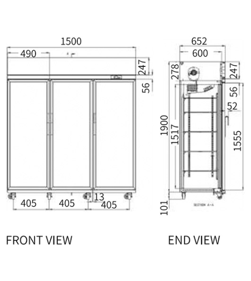 Triple Glass Door Upright Display Fridge LC-1500FS