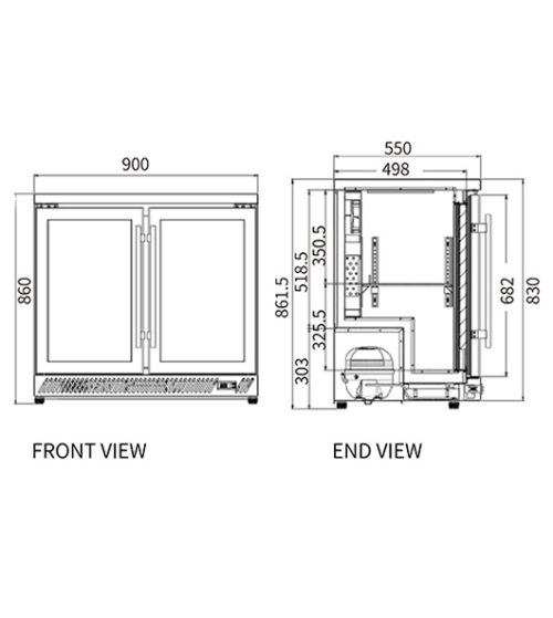 Under Bench Stainless Steel Double Door Bar Cooler BT-900FS/F